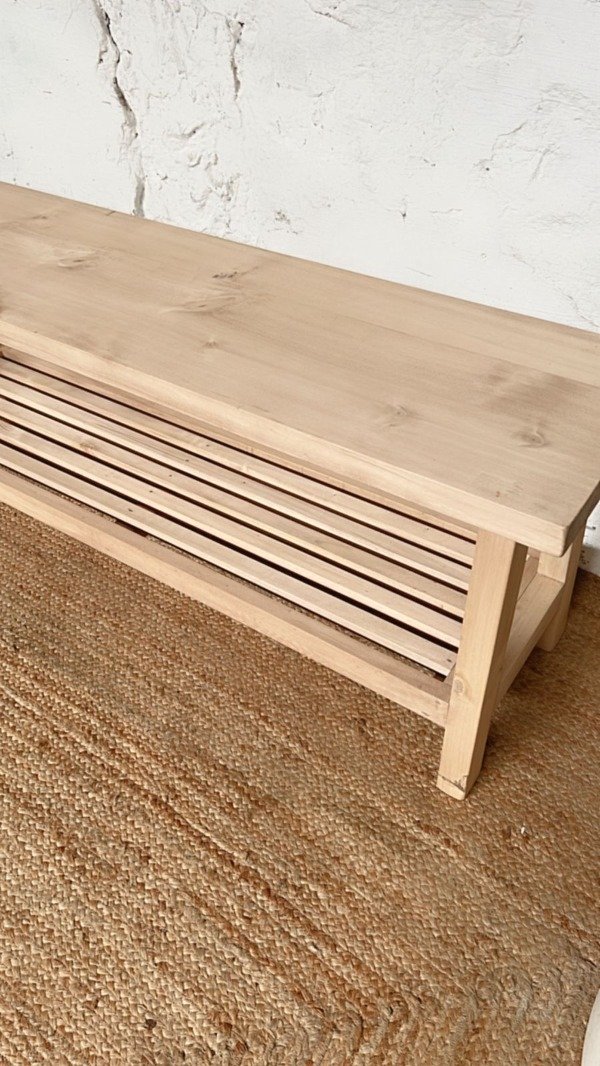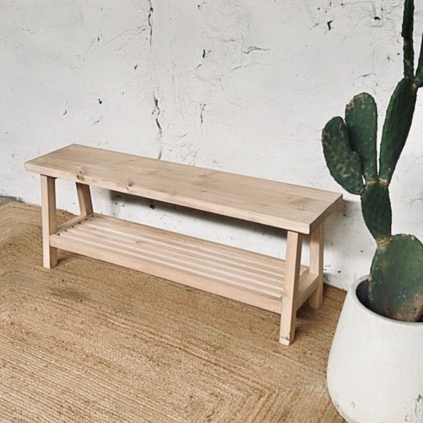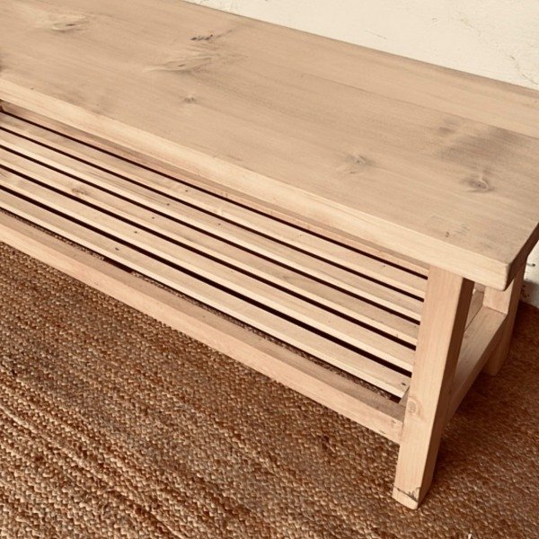 Banco nórdico de Alamo teñido con terminación en cera con parrilla.