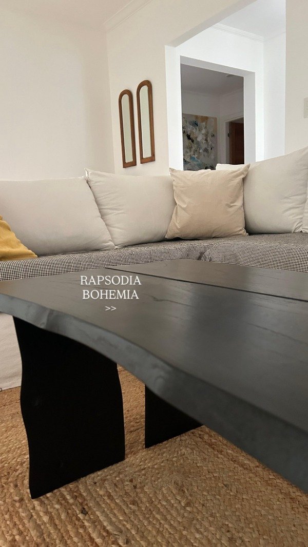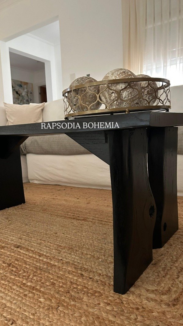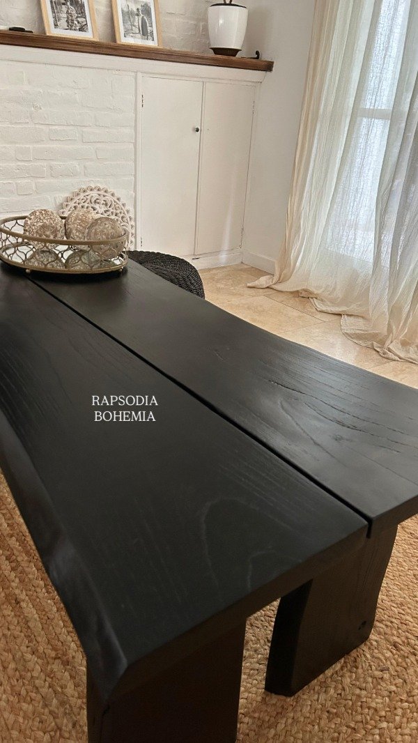 Mesas de Paraíso laqueadas en negro con terminación canto vivo.