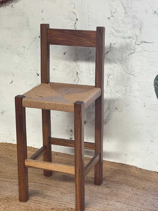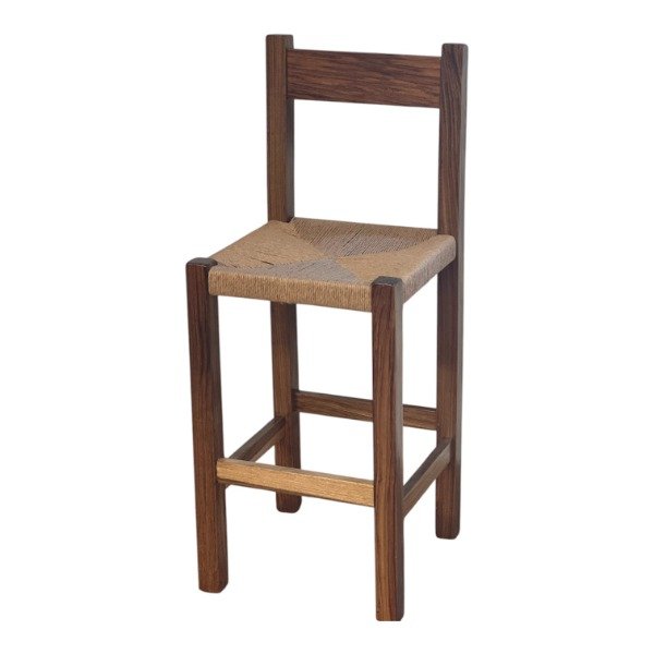 Banqueta de Petiribi macizo con asiento tejida en hilo Kraft.
