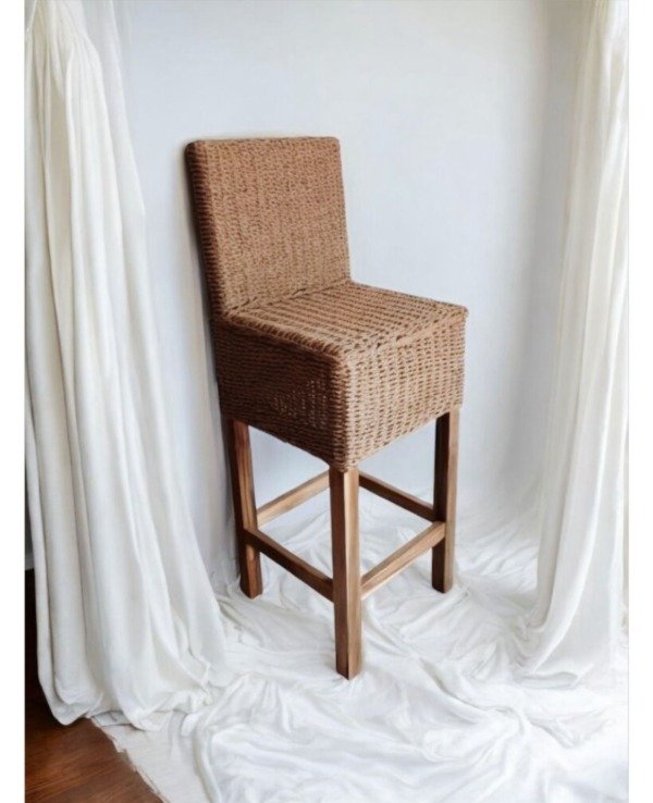 Banqueta de Petiribi macizo con asiento tejida en hilo Kraf Natural.