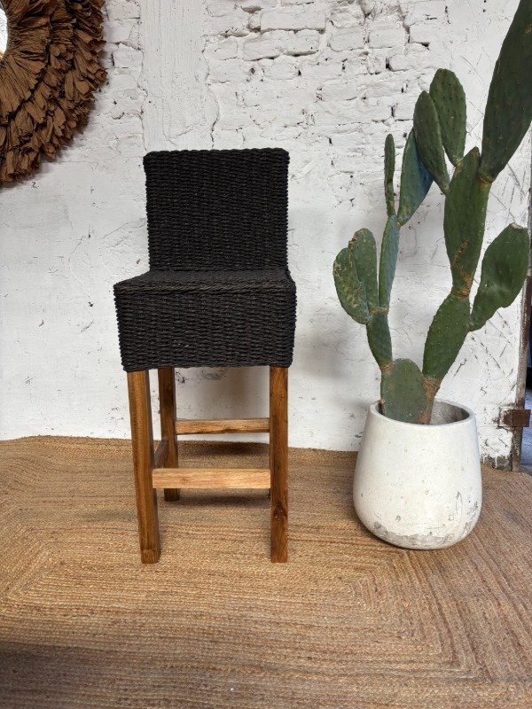Banqueta de Petiribi macizo con asiento tejida en hilo Kraf Negro